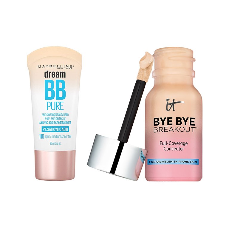 Effort: Maybelline New York Dream Pure BB Cream , which is formulated with salicylic acid, or the IT Cosmetics Bye Adieu Breakout Total Coverage Concealer to conceal any acne flares.