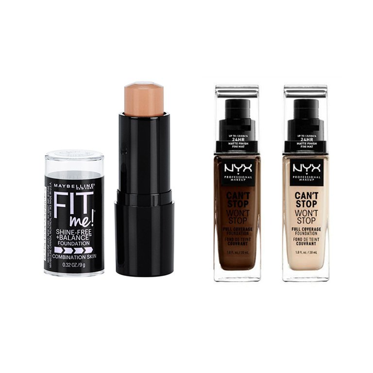 Try: Maybelline Fit Me Shine-Complimentary + Balance Stick Foundation or the NYX Professional Makeup Can't Finish Won't Stop Full Coverage Foundation .